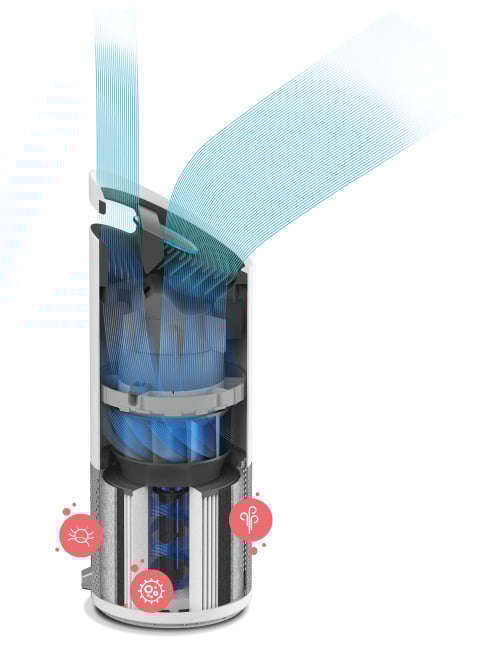 PureDirect dual airflow uses two streams of air without directing the airflow at people in the room.